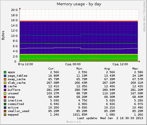 Ну и не забываем открыть доступ в сетевом фильтре, теперь перезагружаем сервис munin-node на всех серверах и ждем когда начнут заполняться наши графики, по умолчанию Munin доступен по адресу http://localhost/munin