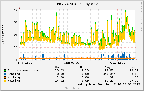 Я расскажу о двух системах мониторинга, которые успешно используются для определения проблем и сбора информации с наших серверов находящихся в дата-центрах Германии. В этой статье речь пойдет о Munin (http://munin-monitoring.org/) - самая простая на мой взгляд утилита мониторинга сети, имеет такие полезные функции как отрисовка графиков, установка порогового значения warning и critical при привышении которых отправляется сообщение системному администратору, информацию хранит в циклической базе данных, тем самым является легковестной системой мониторинга и отлично подходит для небольших проектов. Итак, что же сами разработчики пишут о Munin: